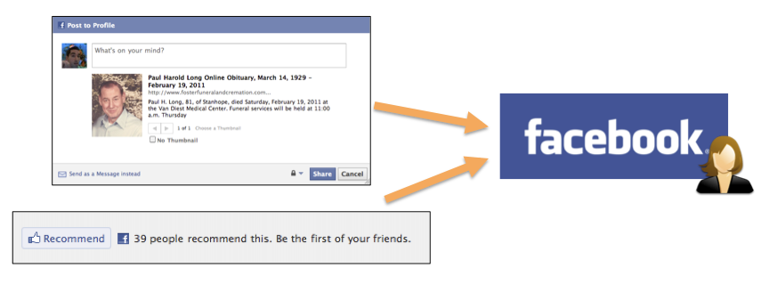 - By simply clicking "Recommend", the obituary is shared to that person's Facebook profile